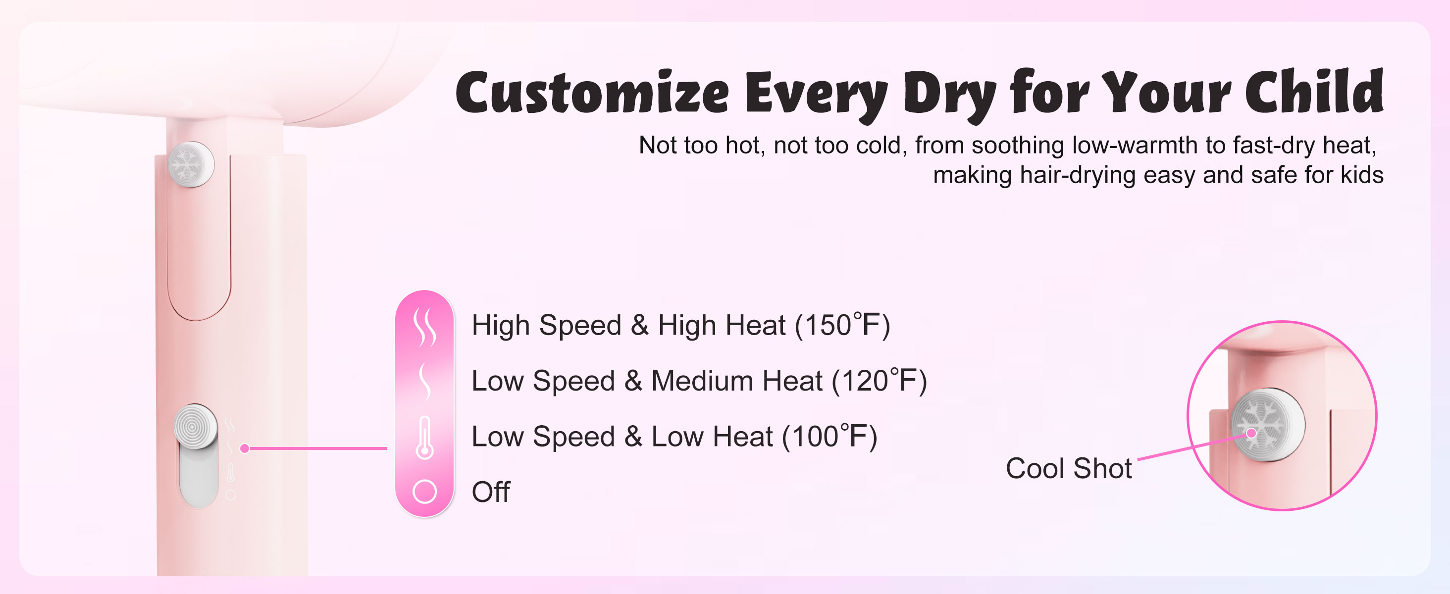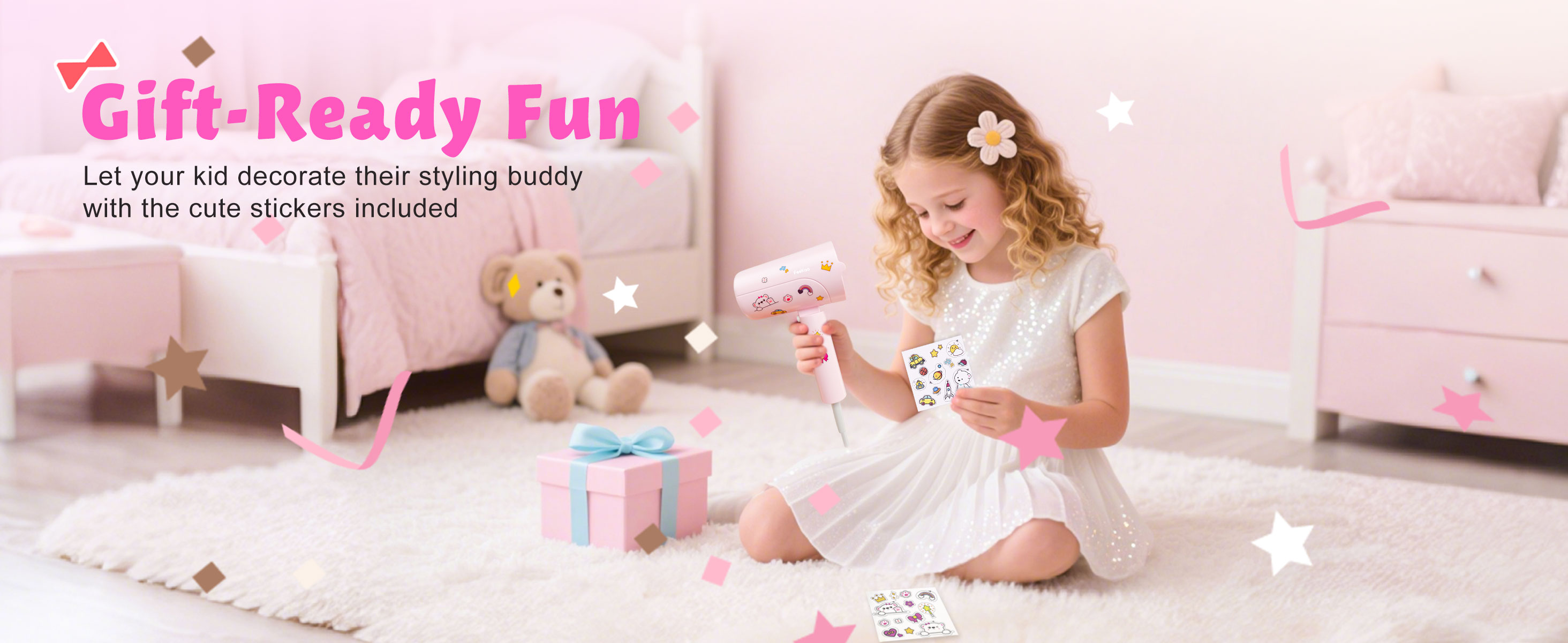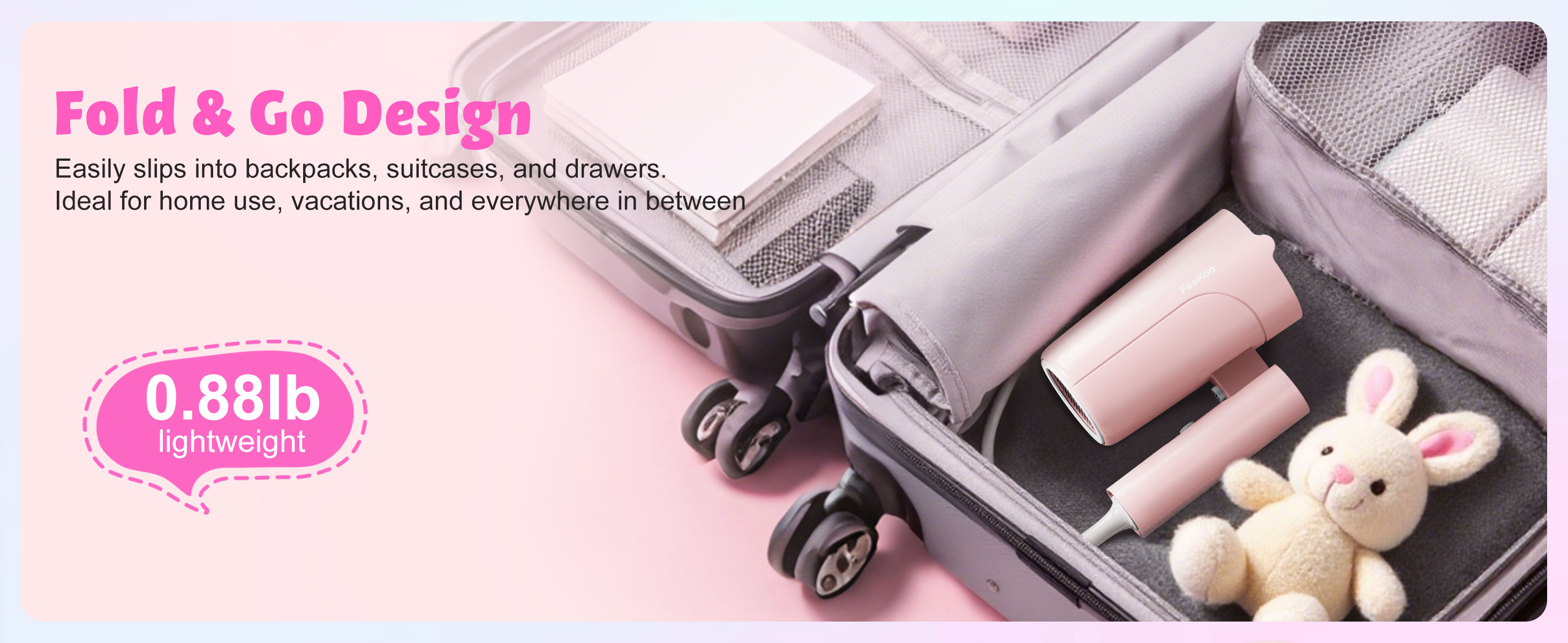 FeeKaa Foldable High Speed Kids Hair Dryer 100 Million Negative Ions, Mini Ionic Travel Kids Blow Dryer with Diffuser Concentrator Detangler Brush Hair Ties Cute Stickers, Compact, Lightweight, Quiet